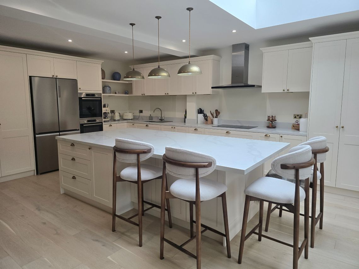 This Richmond TW9 project is a full house refurbishment in a prominent conservation area. The scheme includes side and rear extensions, a new loft conversion, upgraded external walls and roofs, replacement windows and a redesigned front garden. The new open-plan kitchen, dining and living space opens onto the garden and is designed around everyday family use.